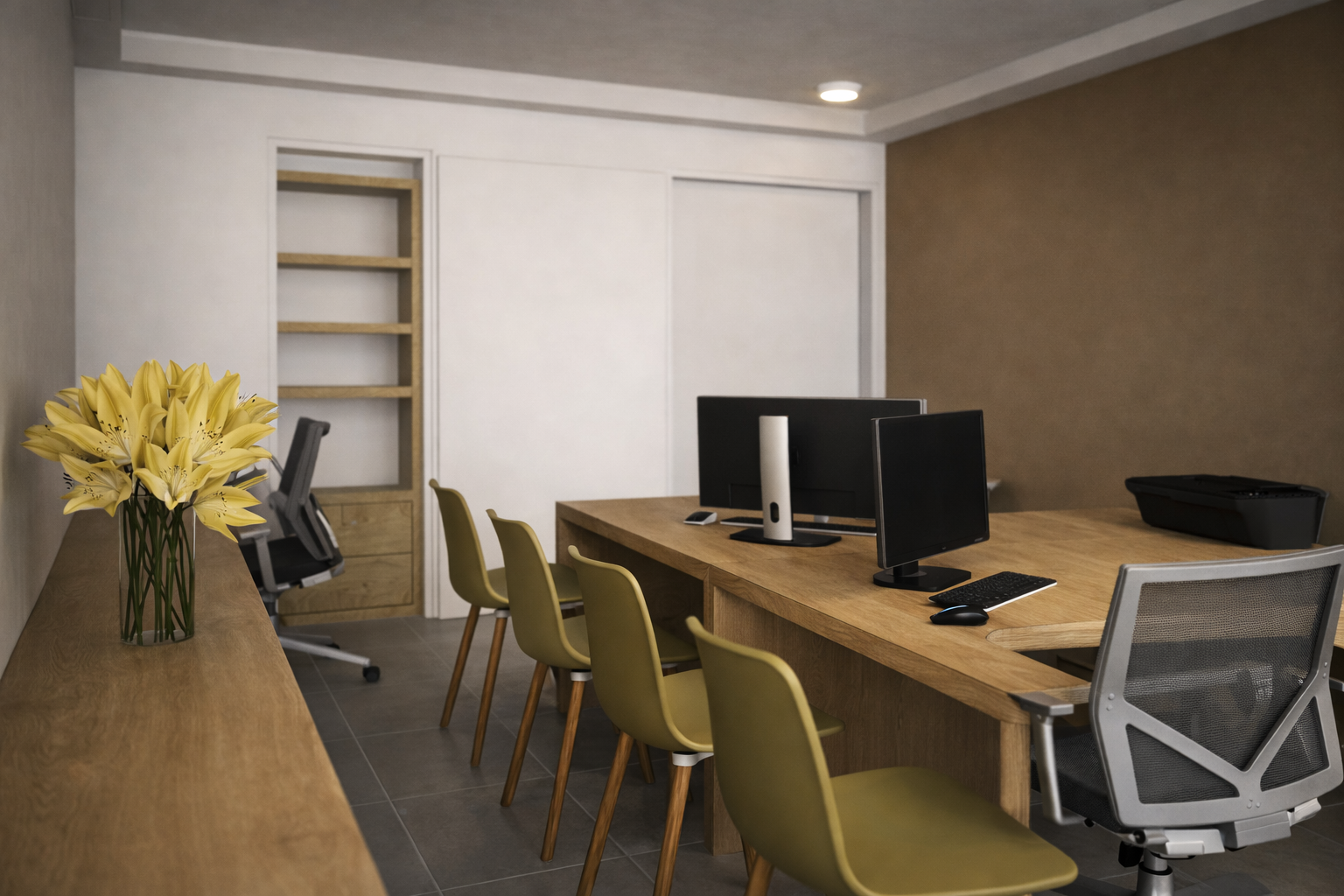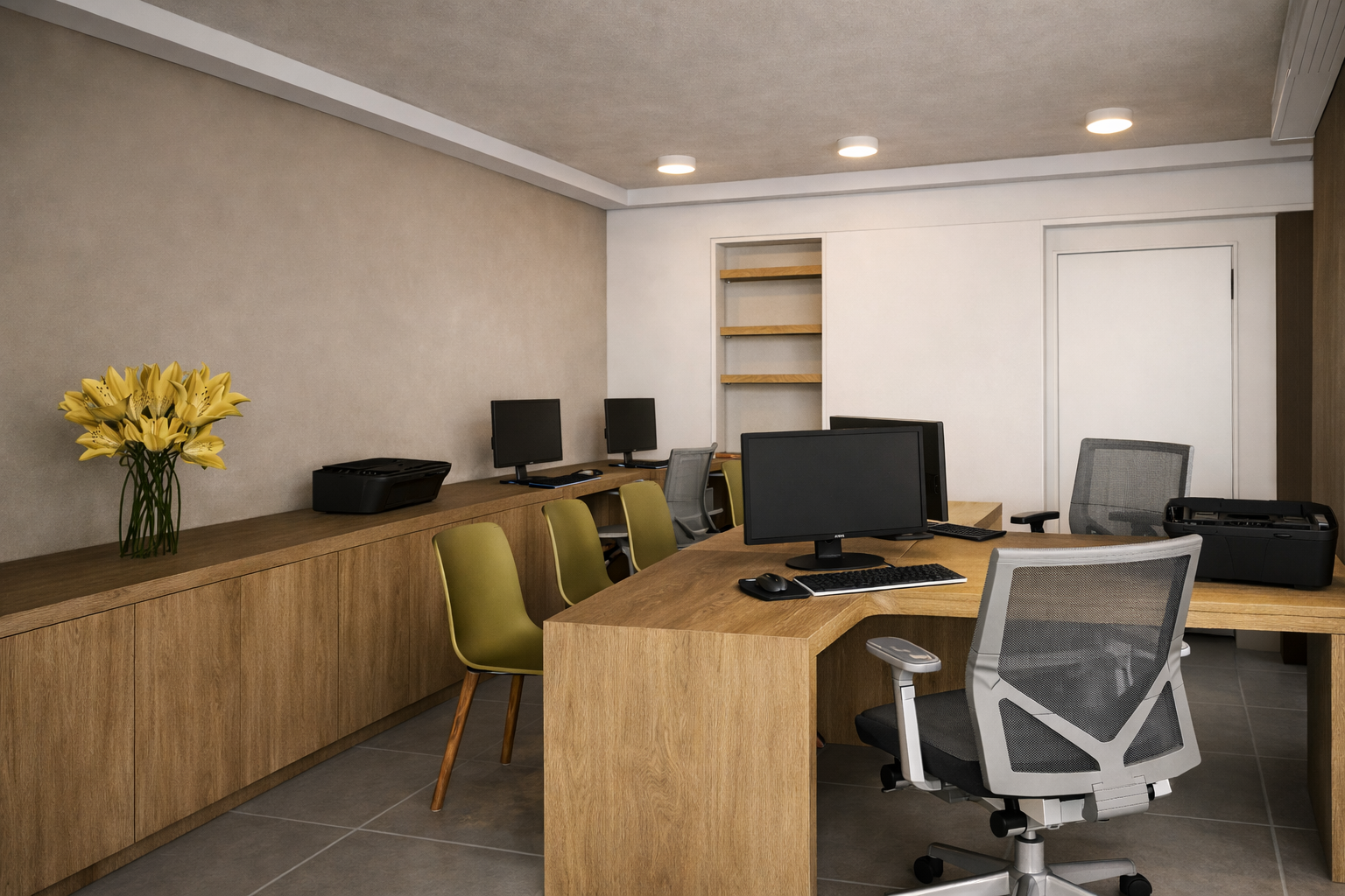 Desenvolvimento de projetos arquitetônico, elétrico e climatização para escritório de advocacia na zona norte de Porto Alegre. O ambiente conta com espera, sanitário, copa e área de trabalho. O serviço também englobou a execução de toda obra, que totalizou 28m².